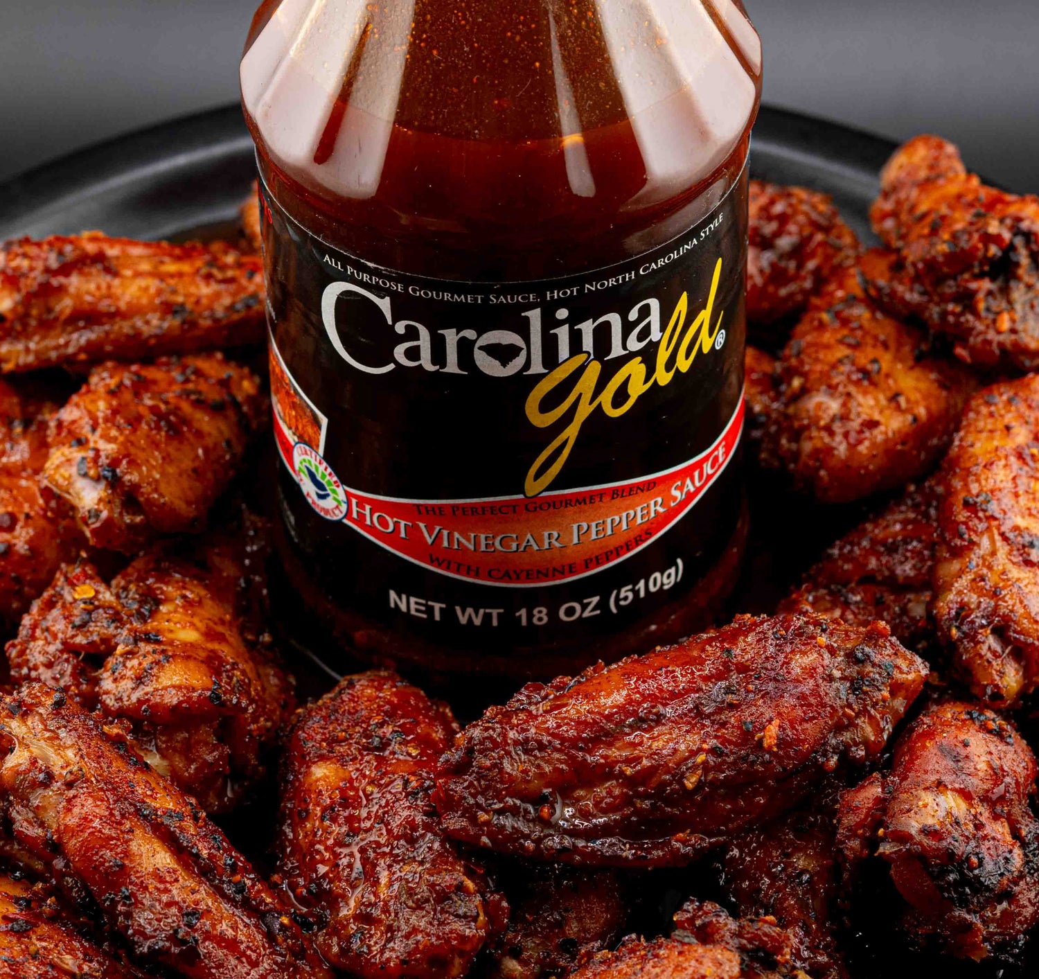 Serve Sweet Vinegar Carolina Gold or Spicy Hot Carolina Gold alongside chicken tenders, fries, or even as a bold twist on pretzel dip.